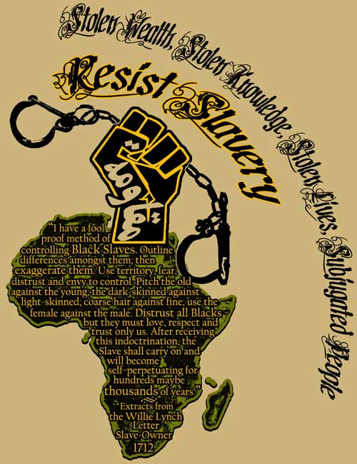 Resist Slavery : "Resist Slavery - Stolen Wealth, Stolen Knowledge, Stolen Lives, Subjugated People"