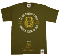 quote from Ali(ra), who was known as 'The Lion of God' It's back by popular demand and in full effect! This time we're rocking it on an army green t-shirt. The Arabic calligraphy repeated through the lion's mane says 'ad din ul haq' which translated means 'The way of Truth' |