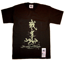 The Japanese calligraphy is an adaptation of a piece by Miyamoto Musashi (c.1584-1645) who was a famous martial artist, warrior, painter, sculptor and philosopher. He is believed to have been one of the most skilled swordsmen in the history of Japan. Musahsi was notorious for defeating the best of swordsmen by simply using a bokken (wooden sword) or at times even a whittled down oar! He also invented and developed the Hyoho Niten Ichi-ryu style of swordsmanship (using two swords as one) and wrote Go Rin No Sho, The Book of Five Rings, (see Thinker's Corner) an enigmatic book of strategy, tactics, and philosophy that is much studied by business people and others even today.